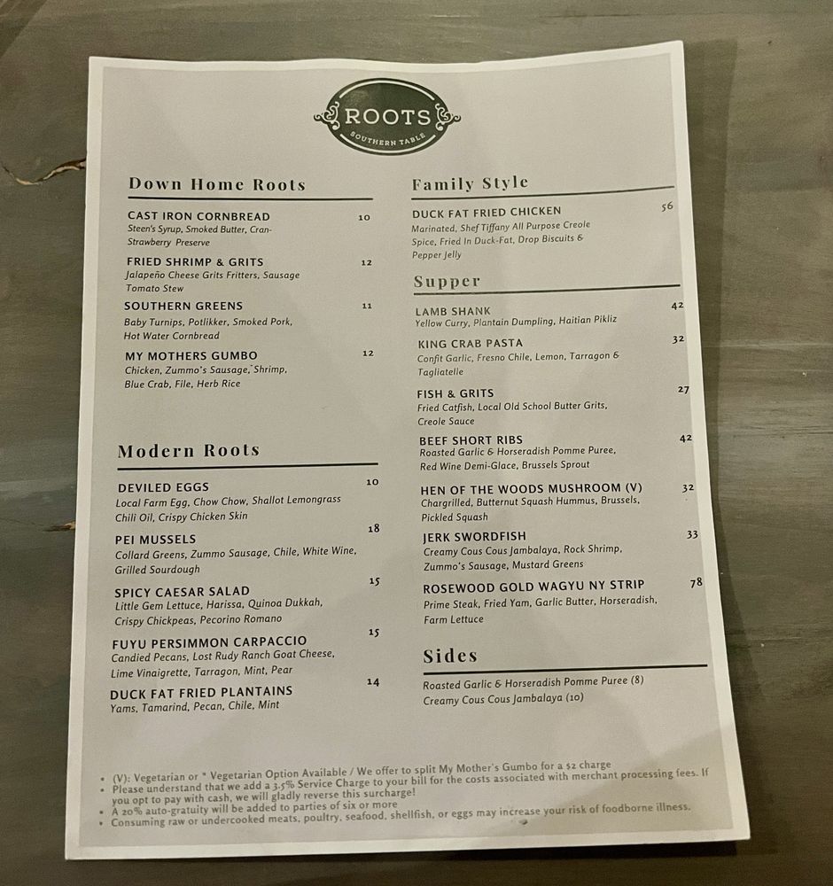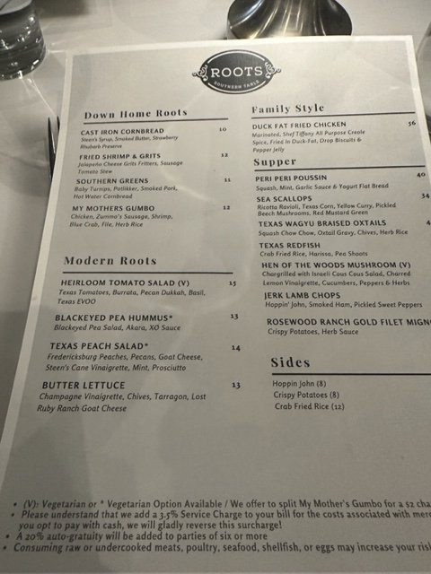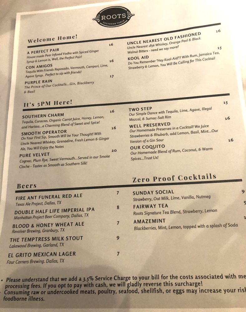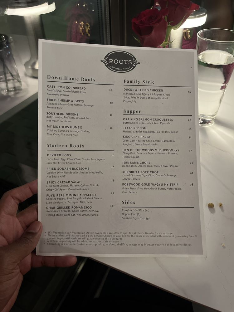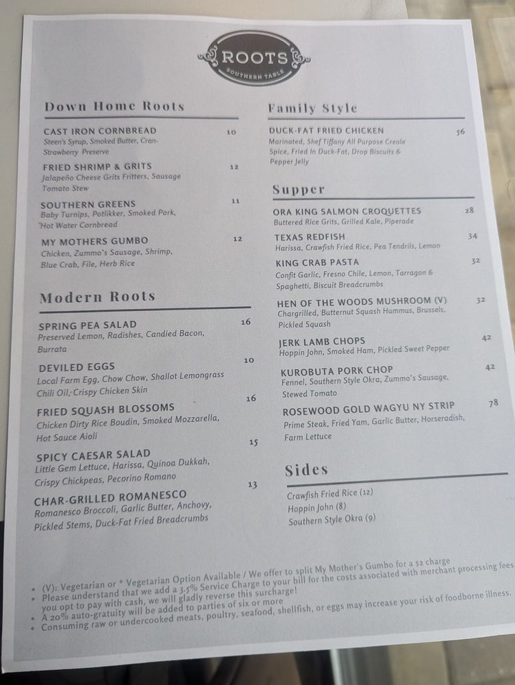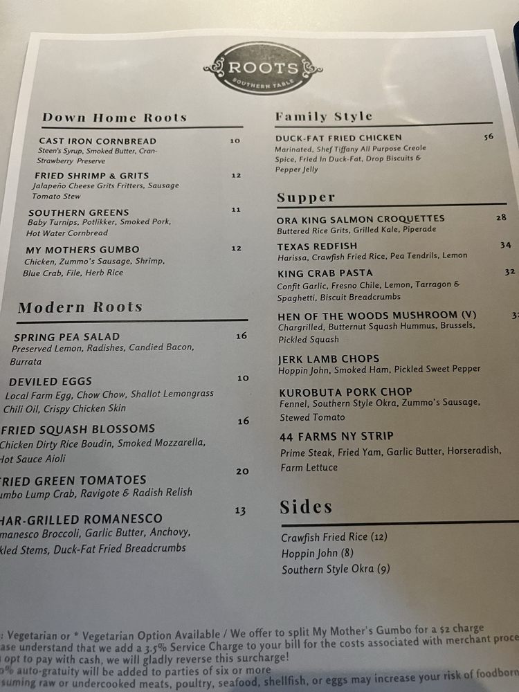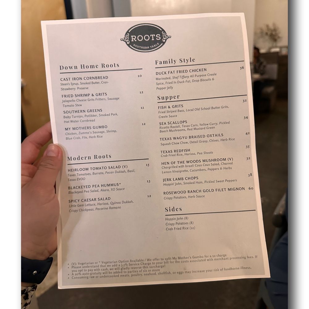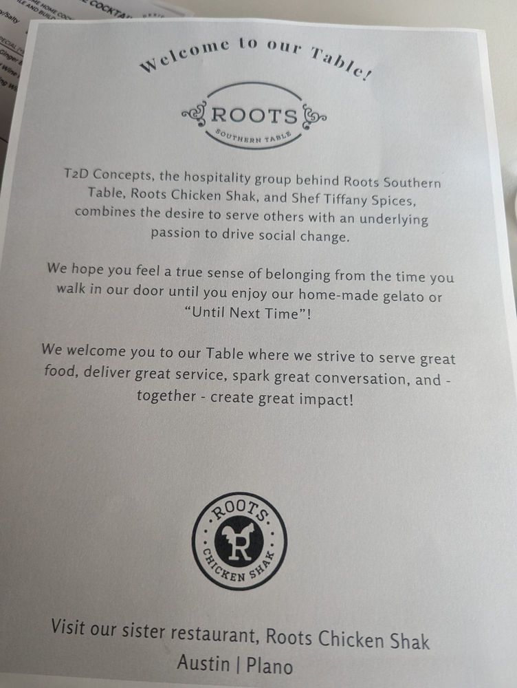 Introducing Roots Southern Table, a cocktail bar that serves Southern-inspired dishes with a focus on salads. Located in Farmers Branch, TX, this upscale restaurant offers a range of utilities like outdoor seating, reservations, and full bar service. Customers rave about the duck fat fried chicken, redfish with crawfish fried rice, and cast iron cornbread with smoked butter. The ambiance is cozy and inviting, perfect for a date night or special occasion. Rooted in Southern hospitality, the menu features modern twists on classic dishes like deviled eggs with chili oil and Texas Red Fish with crawfish fried rice. The standout dish is the duck fat fried chicken, a must-try for its crispy skin and flavorful seasoning. Overall, Roots Southern Table is a culinary experience that celebrates Southern cuisine while embracing contemporary flavors.